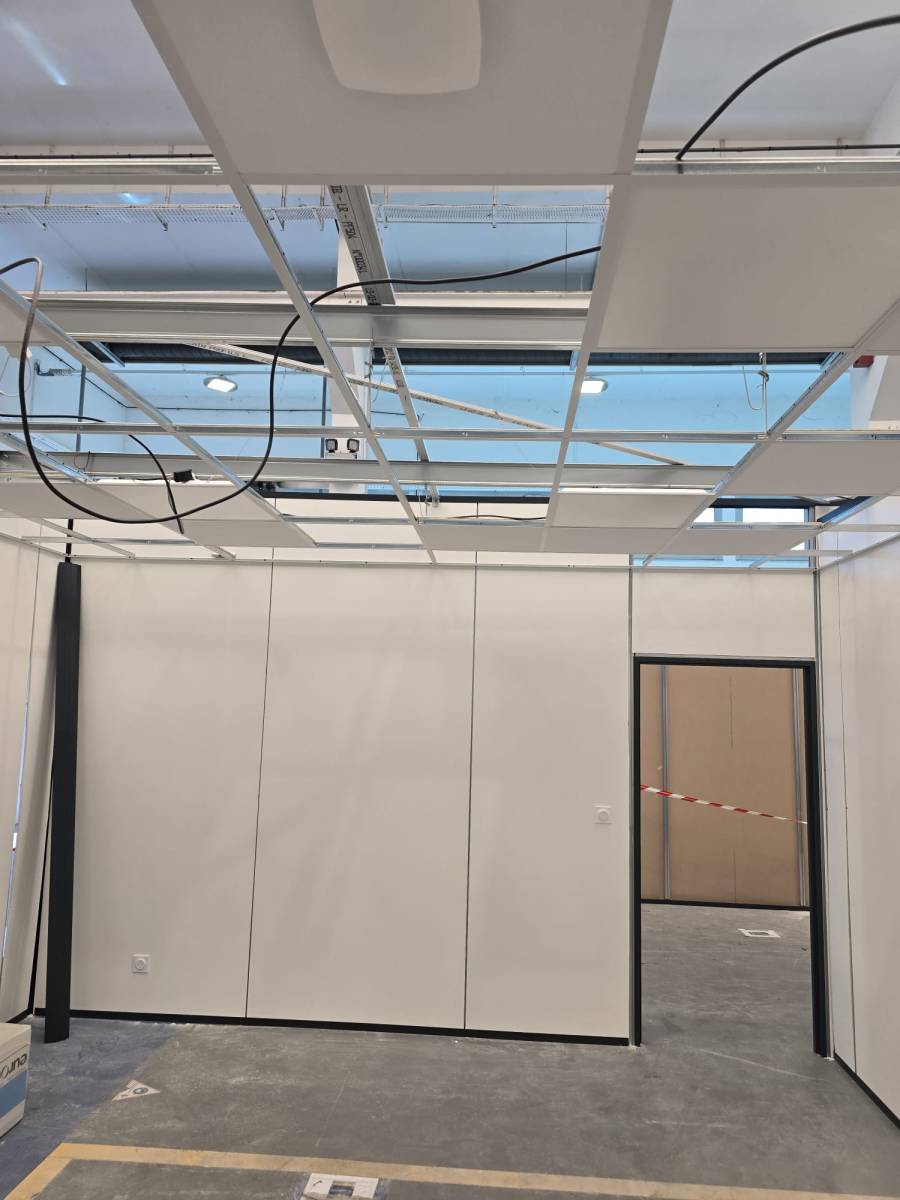 Nous avons installé 10 bureaux en cloisons démontables de la marque ABCD International, reconnue pour sa robustesse et ses excellentes performances acoustiques.