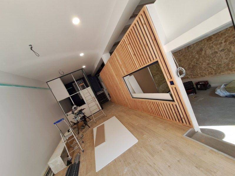l’installation de cloisons habillage claustra en pin rose