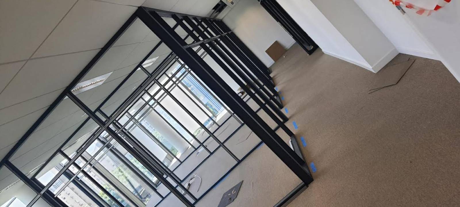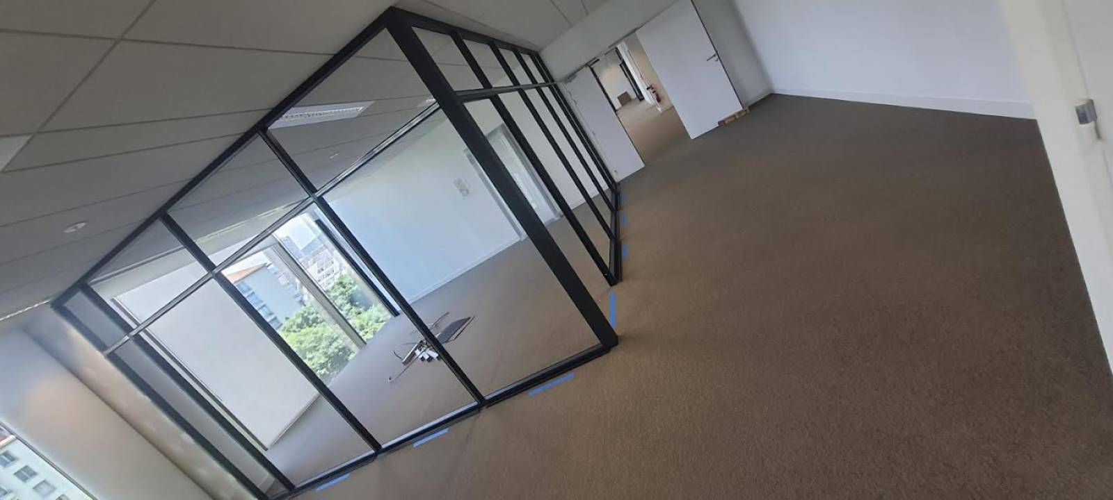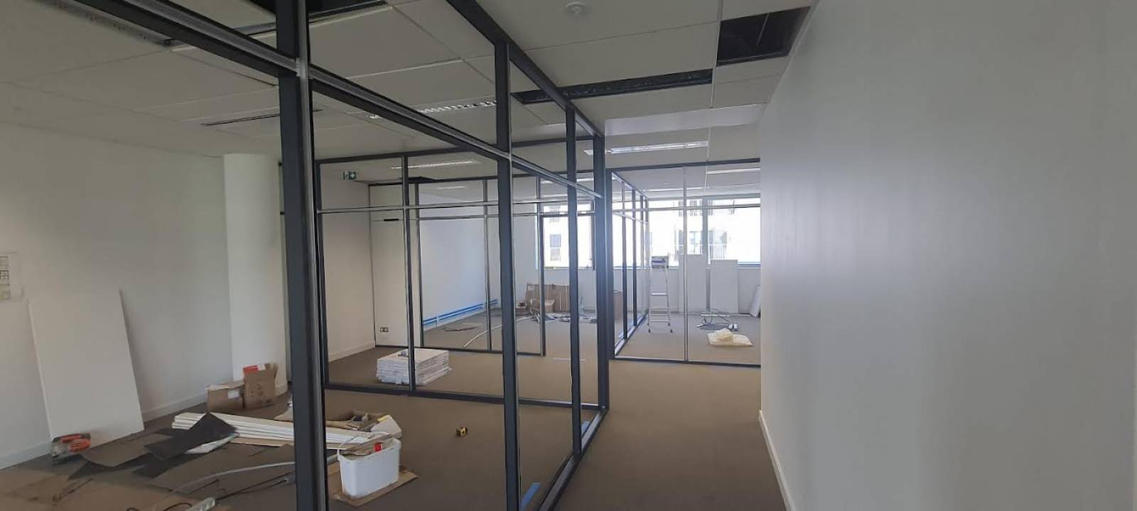 Nous avons été sollicités en tant que prestataire de service pour la rénovation et l’aménagement d’espaces de travail avec pose d’ossature de cloisons amovibles de la marque ABCD en double vitrage avec impostes vitrés.