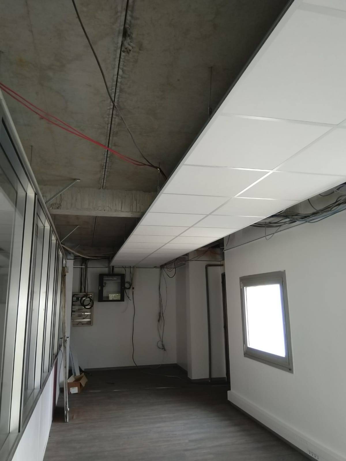 Nous avons effectué une remise à neuf du faux plafond de la société STEF en posant manuellement des dalles de plafond amovibles 600x600 sur une structure porteuse métallique.